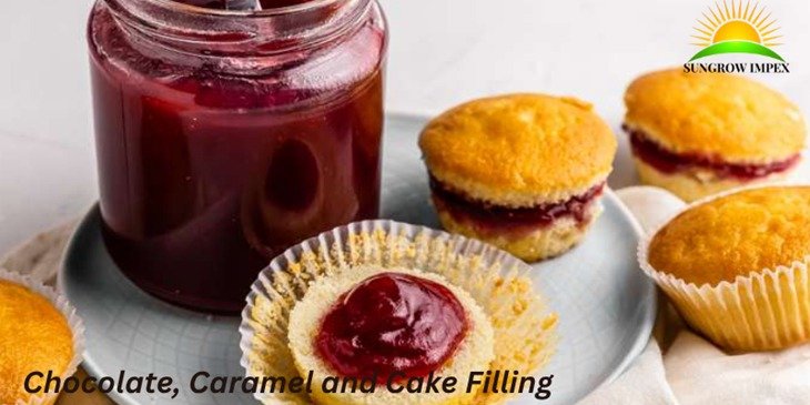 Rich caramel chocolate filling with a smooth texture, perfect for cakes, pastries, and dessert layers.